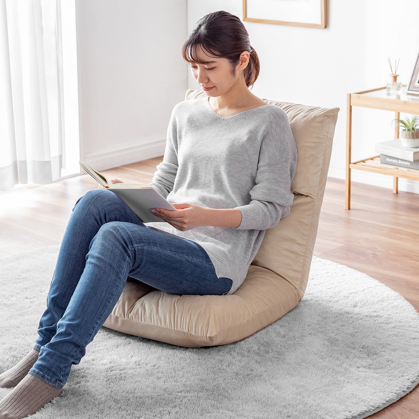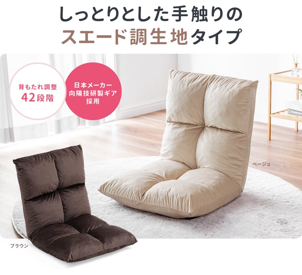 座椅子 ふわふわ コンパクト 日本メーカー向陽技研製42段ギア 低反発ウレタン スエード調 ベージュ