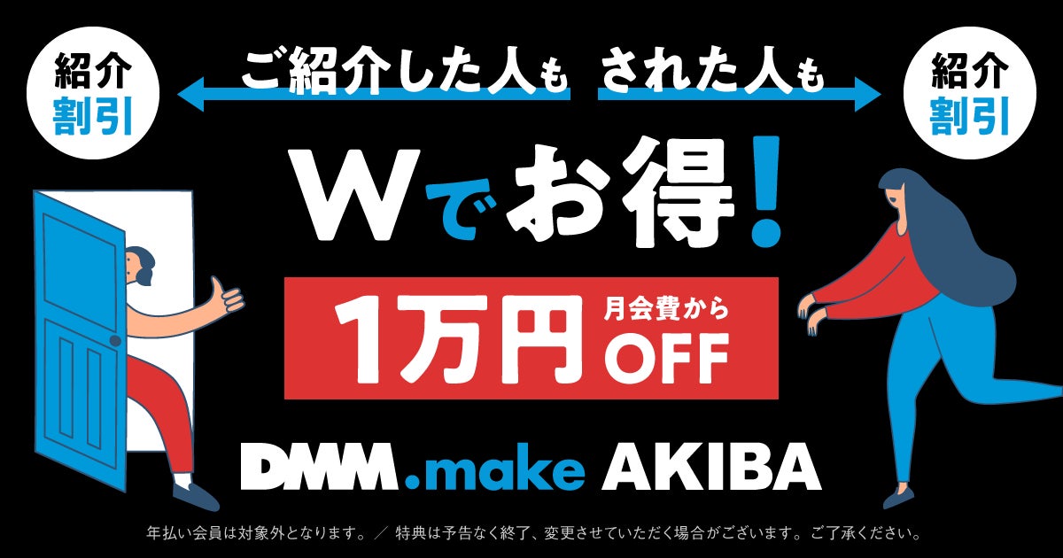 合同会社DMM.com(本社:東京都港区、会長 兼 CEO 亀山敬司、以下DMM)が秋葉原にて運営する「DMM.make AKIBA」は、会員紹介制度をリニューアルしたことをお知らせいたします。本件は、2022年4月27日(水)より適用となります。