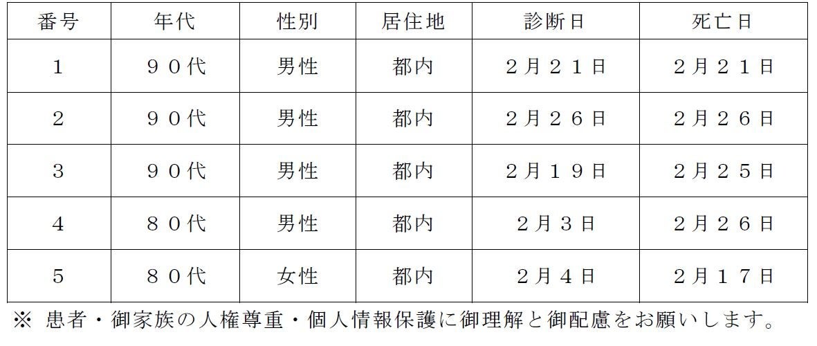 都内で新型コロナウイルスに感染した方が死亡されましたのでお知らせします。