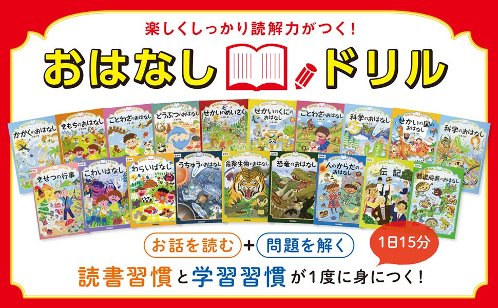 読書習慣と学習習慣がつく文章読解ドリル「おはなしドリル」シリーズ。このたび、シリーズのベスト版となる、おはなしドリルベストセレクション『はじめてのおはなしドリル 低学年』『科学と自然のおはなし 低学年』を8月11日(木)に発売いたします。