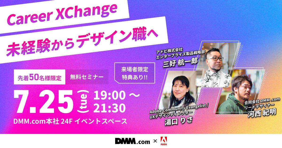 【DMM.com x アドビ】“次世代のデジタル人材育成”をテーマとしたイベント「Career XChange 未経験からデザイン職へ」を7/25(火)に開催