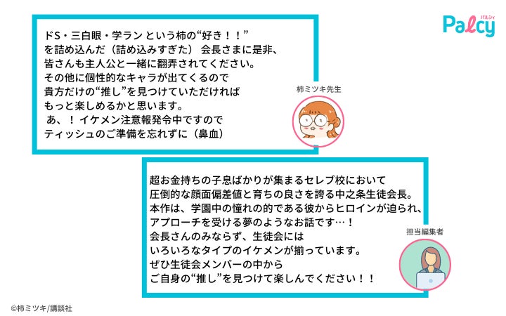 『生徒会長さまのお気に入り』は少女・女性マンガアプリPalcyにて連載され、毎週金曜日に更新予定。