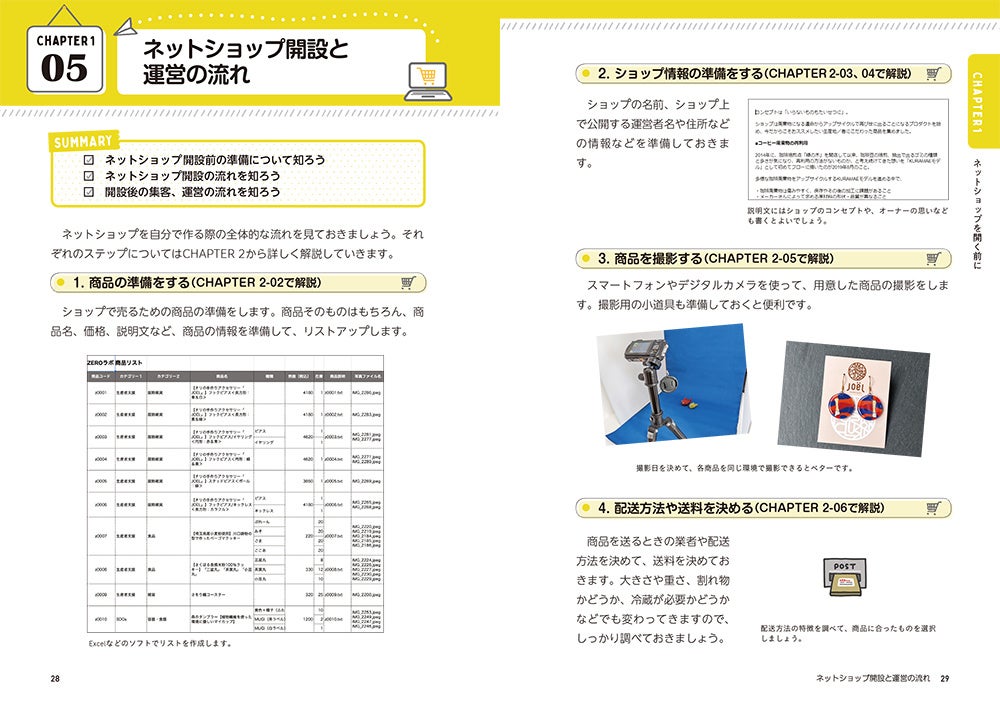 本書では、開設前の準備から、デザインや商品登録などのショップ制作、開店後の運営・集客や改善の流れまで、知っておくべきことを網羅的に扱っています。