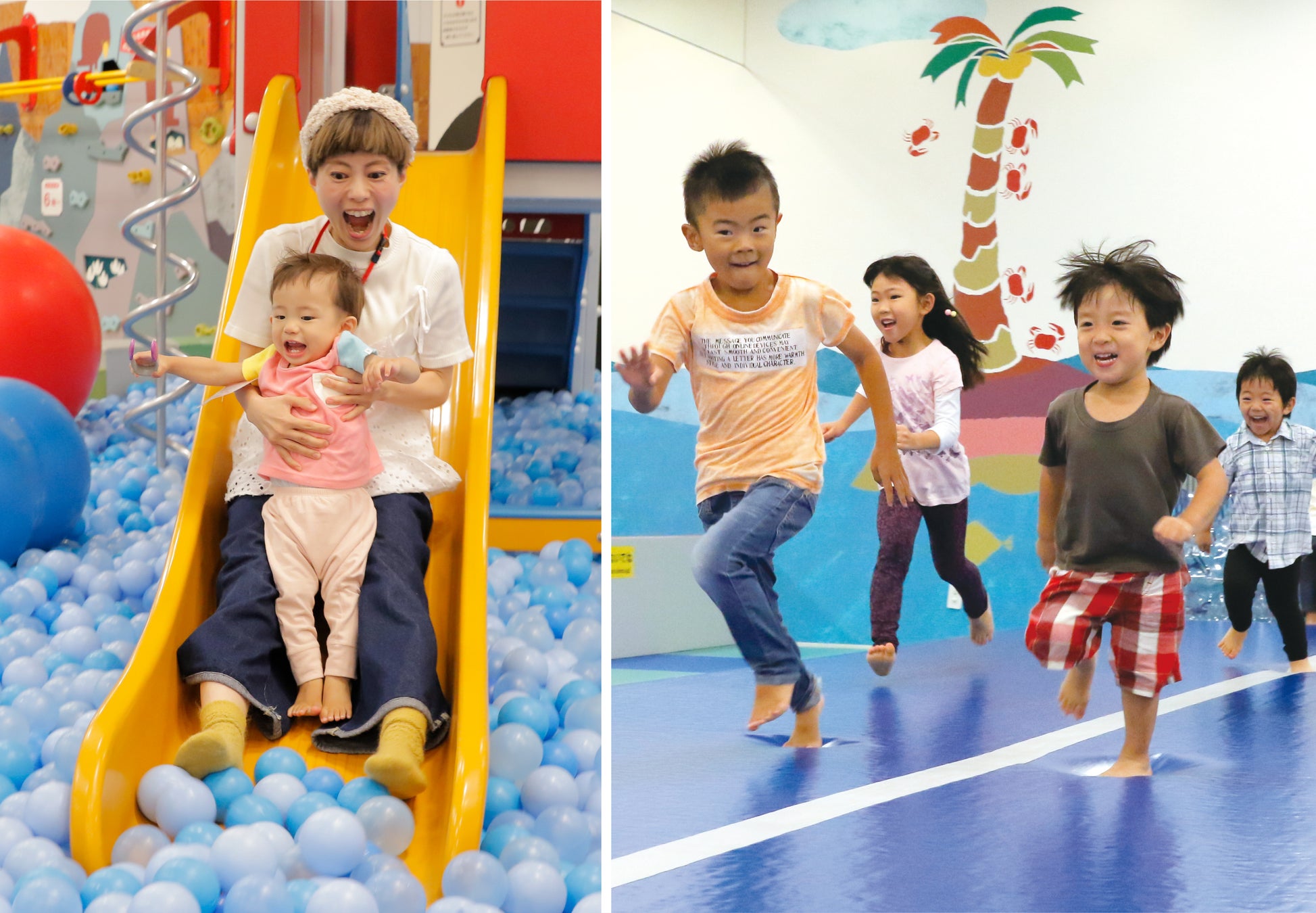 楽しくからだを動かせるゾーン、ごっこ遊びや組み立て遊びを楽しめるゾーンなど、天候に左右されず子どもたちが好きなときに思いっきり遊べる室内あそび場です。