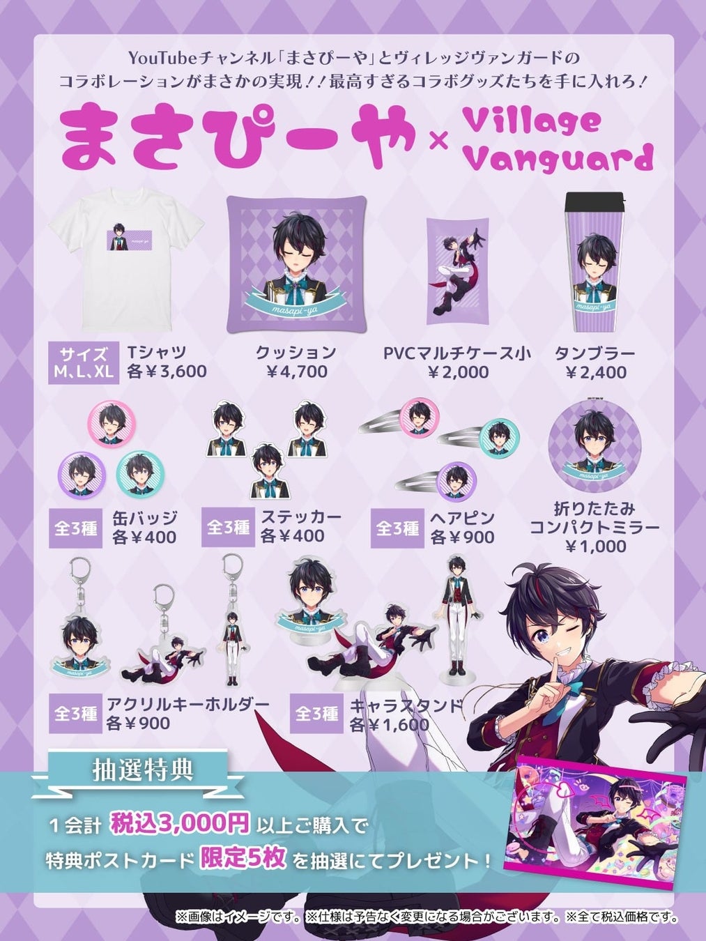 まさぴーやのキュートなデザインのグッズが完成!おすすめグッズが盛りだくさん!缶バッジやキャラスタンドなどの小物グッズからクッションまで!期間限定受注販売のため見逃し厳禁!限定アイテムを手に入れて動画配信楽しんじゃおう!さらに!抽選で【ポストカードプレゼントキャンペーン】もあるのでお見逃しなく◎