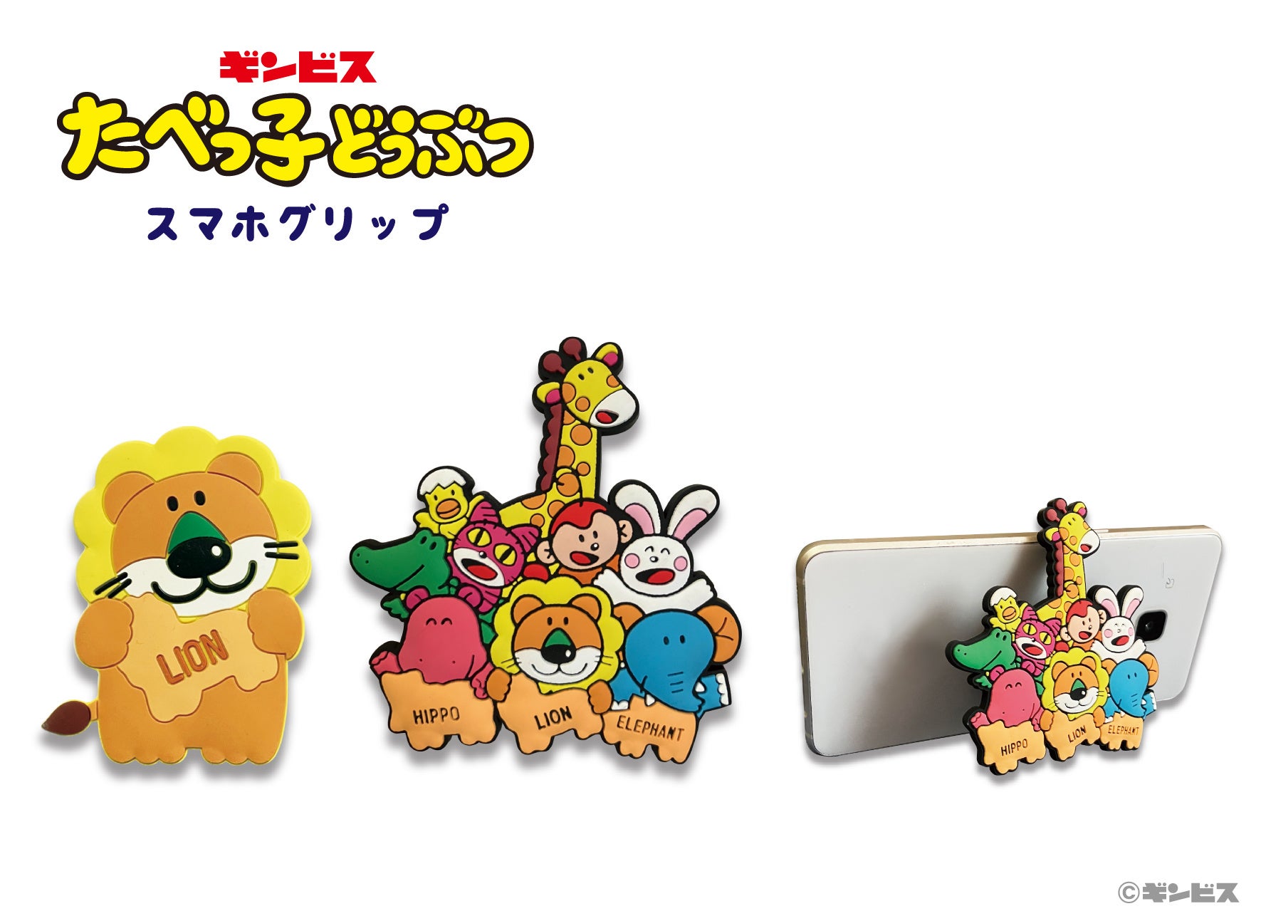 ■たべっ子どうぶつ ラバースマホグリップ らいおん&ビスケット/集合&ビスケット:各¥1,320(税込)