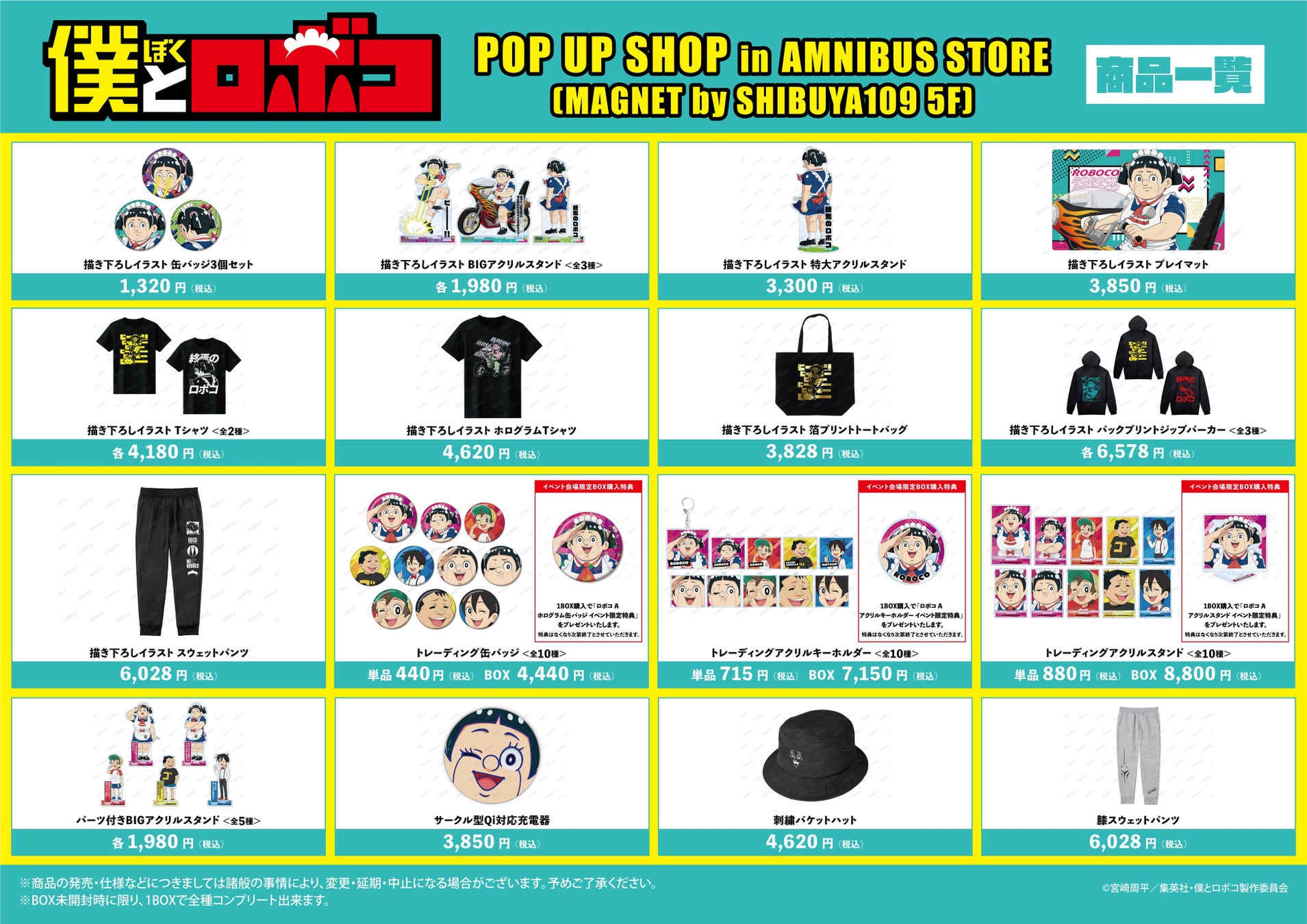 漫画・アニメのオリジナルグッズを販売する「AMNIBUS STORE」を運営する株式会社アルマビアンカ(本社:東京都中野区、代表取締役:坂井智成)は、この度、「『僕とロボコ』 POP UP SHOP in AMNIBUS STORE」を開催いたします。