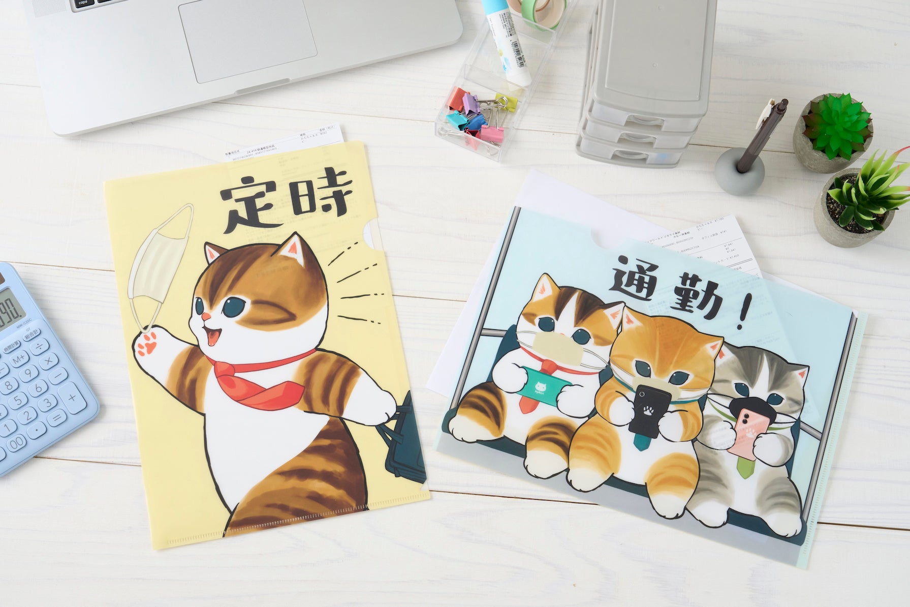 ■ クリアファイル(定時にゃん/通勤にゃん):各¥385(税込)