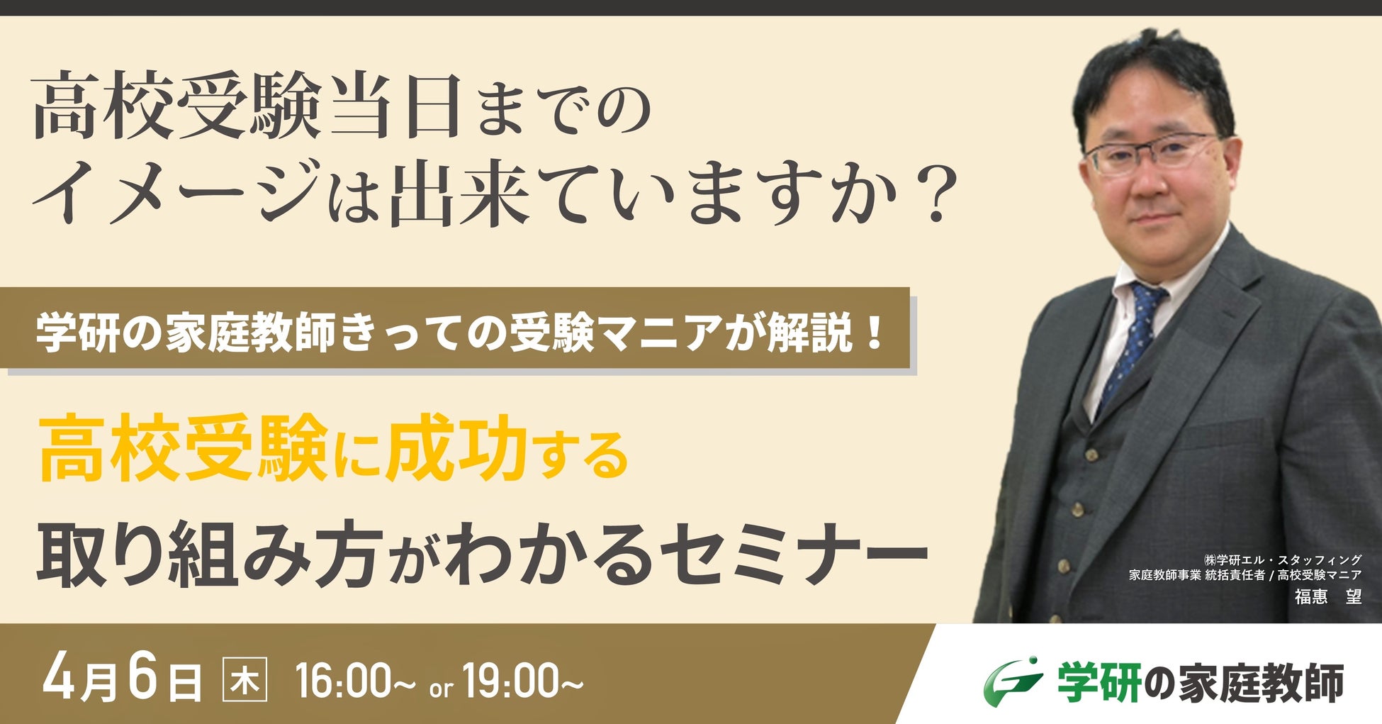 学研の家庭教師が、【中学3年生の保護者必見!】高校受験に成功するための取り組み方がわかるセミナーを4月6日(木)に開催します!
