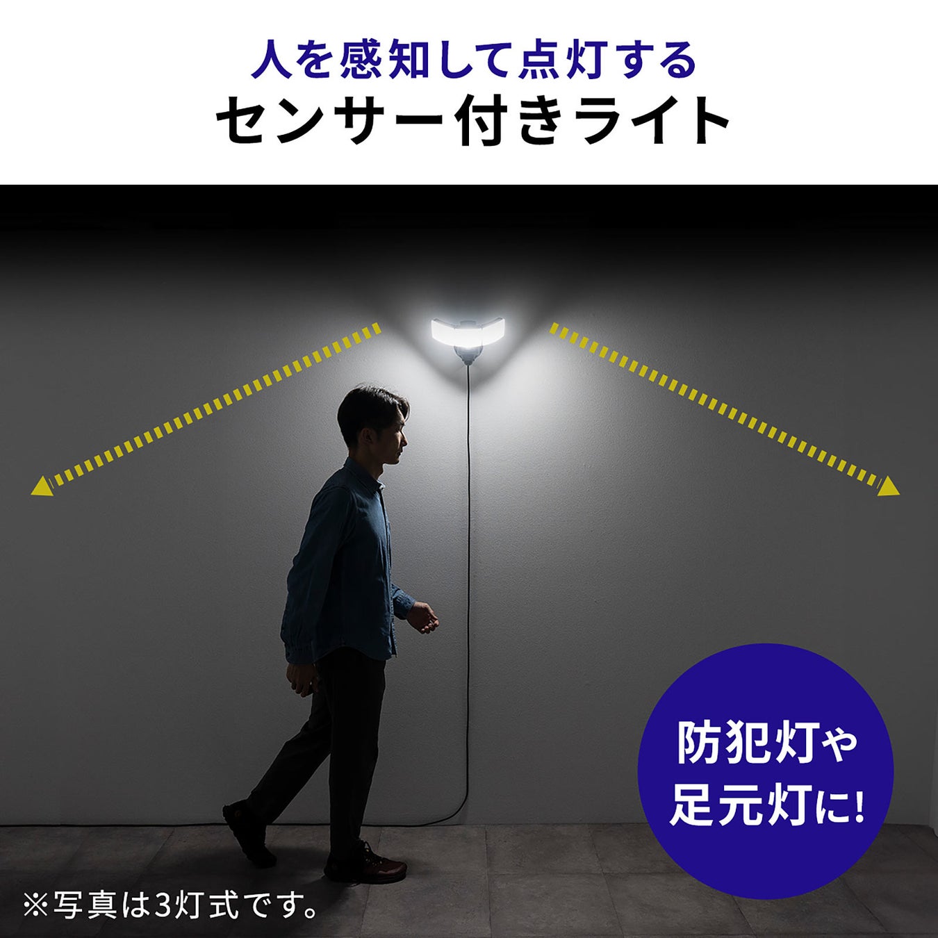 センサーライト 屋外 LED コンセント 防水 2灯 5m 人感センサー 100V 角度調整