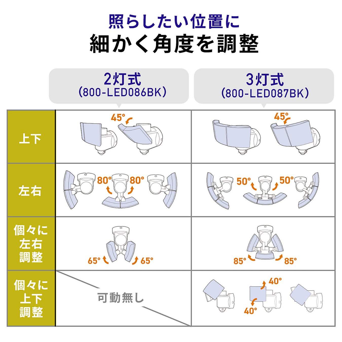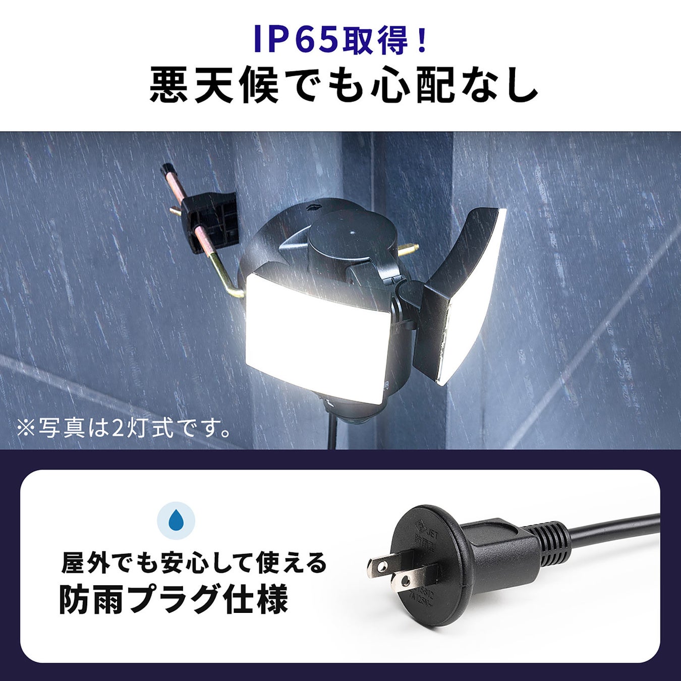 サンワサプライ株式会社(本社:岡山市北区田町1-10-1、 代表取締役社長 山田 和範)が運営している直販サイト『サンワダイレクト』では、防雨プラグで屋外でも使用できるIP65仕で、センサーで反応し点灯。防犯対策としても使用できるLEDセンサーライトで、2灯/1200ルーメン仕様「800-LED086BK」、3灯/3000ルーメン仕様「800-LED087BK」を発売しました。