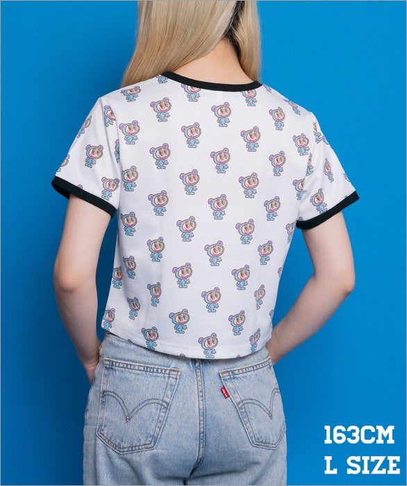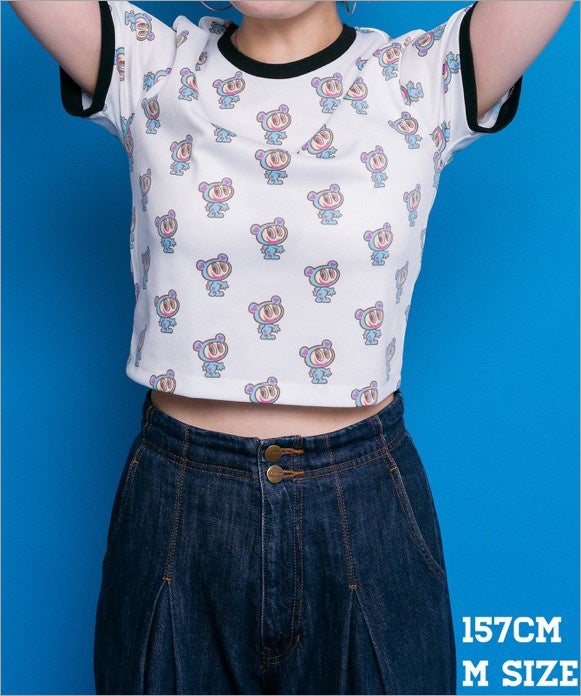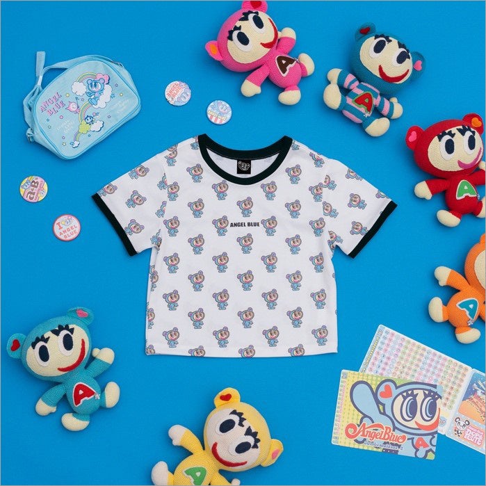 話題のエンジェルブルー復刻アイテム第8弾はナカムラくんの総柄ショート丈Tシャツ! 流行りの“Y2K”ファッションにもぴったりのポップなデザイン