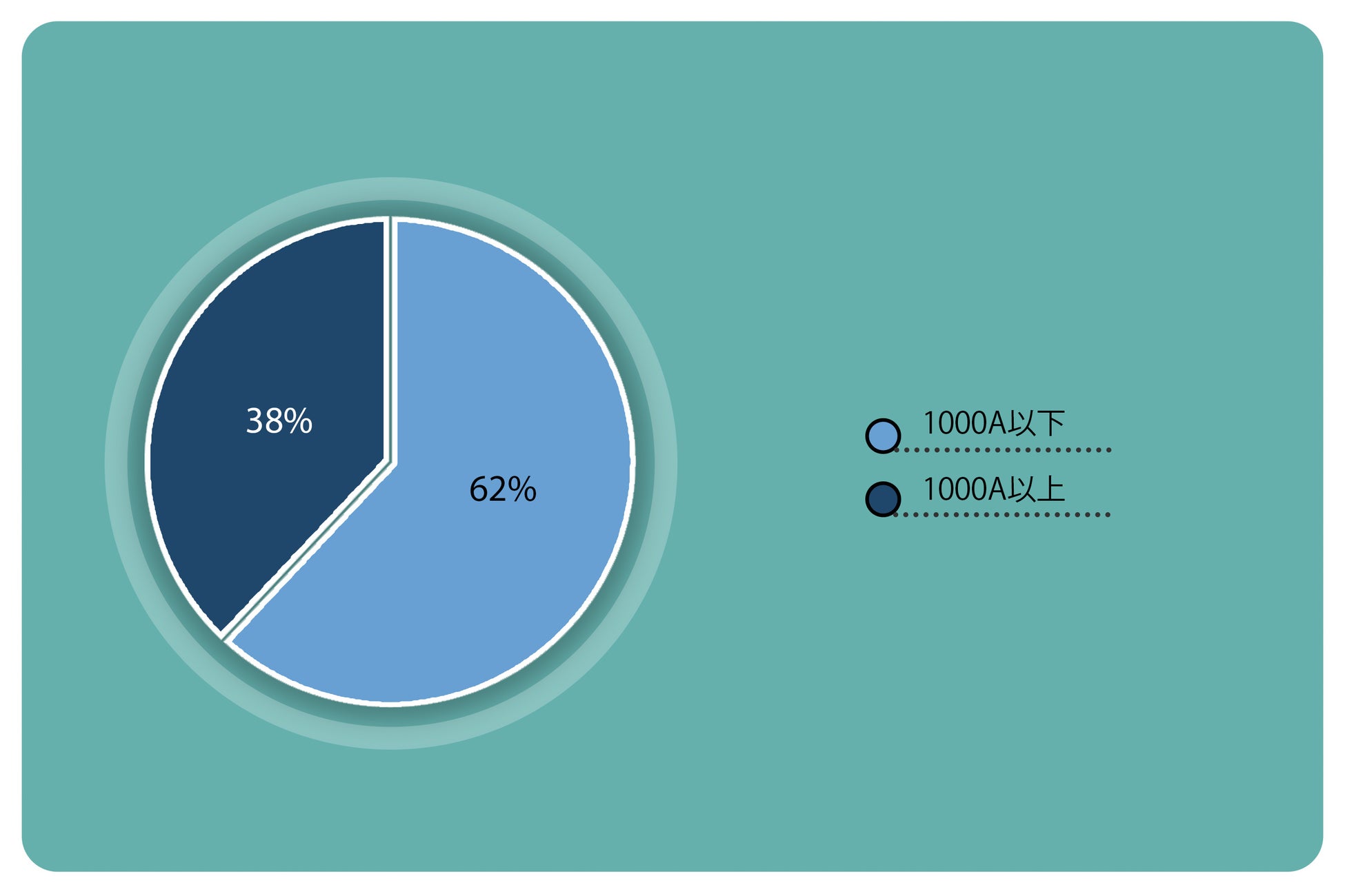 電流に基づくと、市場は1000A以下と1000A以上に分かれる。