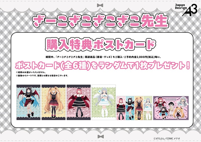 期間中、ゲーマーズオンラインショップにて『ざーこざこざこざこ先生』催事商品をご購入2,000円(税込)ごとに、特典ポストカード(全6種)を1枚ランダムでプレゼントいたします!