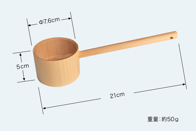 「マイ柄杓 HISHAKUん」は、直径が約7.6cmで全長約21cmとコンパクトにまとめました。持ち運びやすい、安心・高品質のミニ柄杓です。