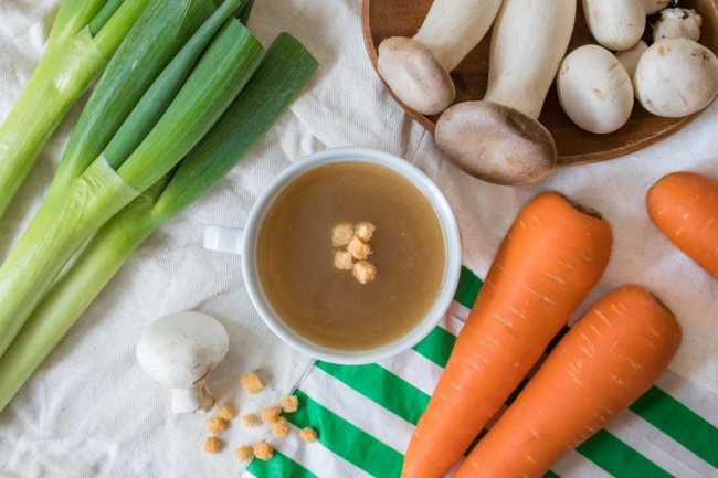 使用食材:青ねぎ※、にんじんパルプ※、マッシュルーム、エリンギ、チキンブロス(※が熊本県合志産)