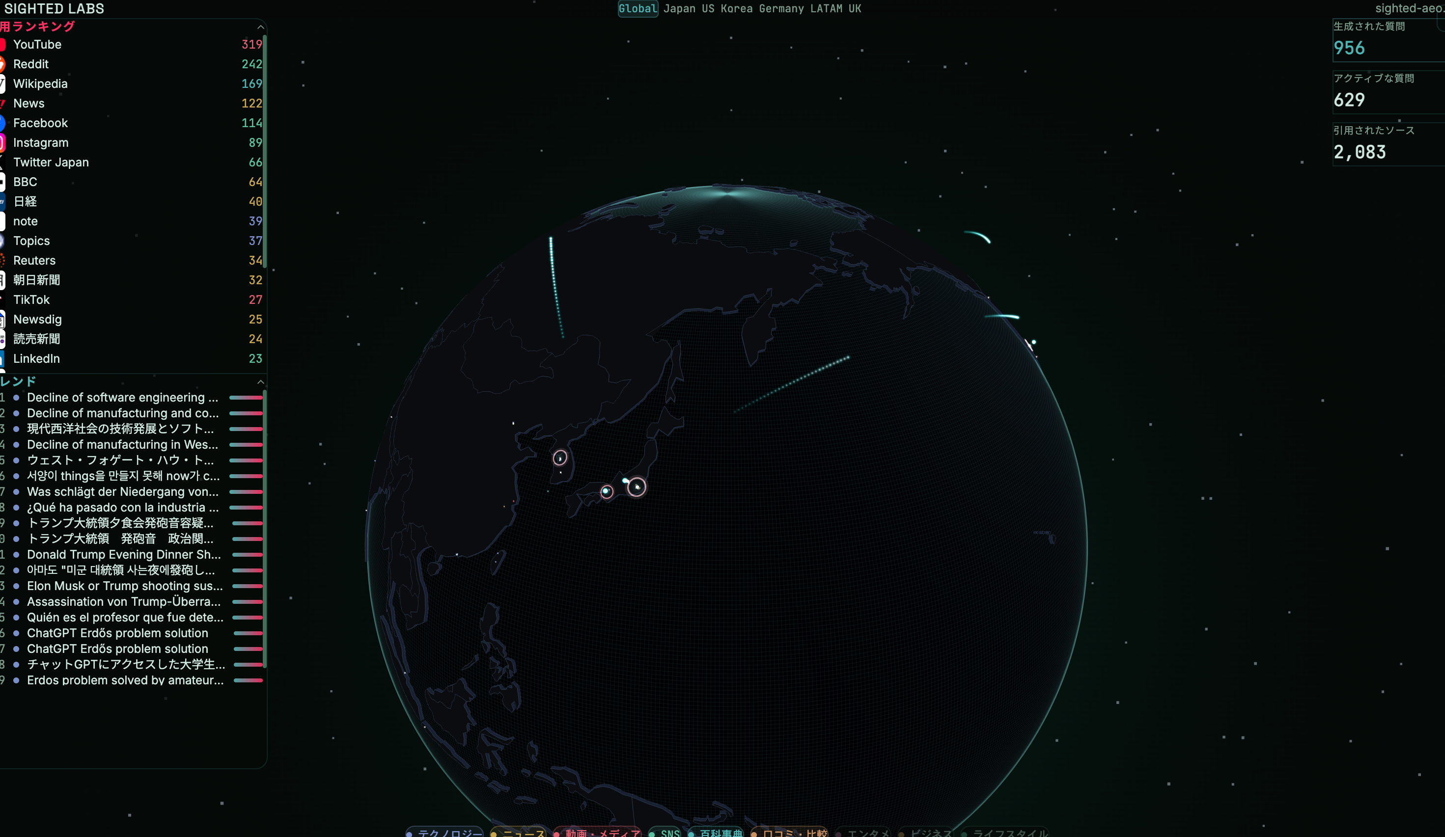 【無料公開】AI検索3エンジンの引用データを3Dで可視化 ── リアルタイム引用シミュレーション「Sighted Lab」...