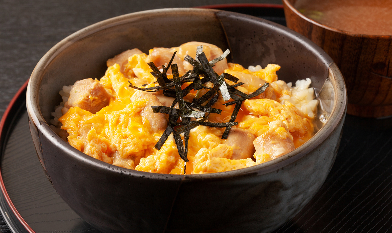 親子丼は、割下等で煮た鶏肉を溶き卵でとじて、白米に乗せた丼もの。鶏肉と鶏卵を使うことから、「親子」という名称になりました。