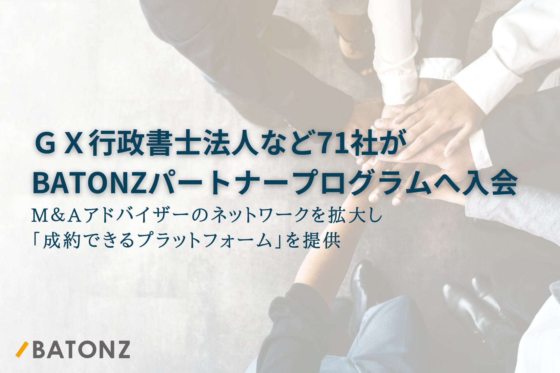 GX行政書士法人など71社がBATONZ パートナープログラムへ入会
