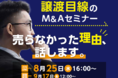 【セミナー】“売らなかった”経営者が体験談を語る!「成長戦略セミナー 私が会社を売らなかった理由」8…