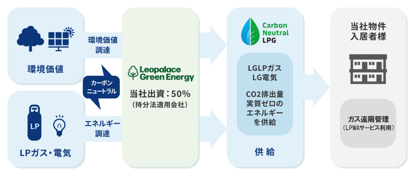 CO₂排出量実質ゼロの「レオパレスグリーンLPガス」約47万㎥の供給により、排出抑制量が3,000t…