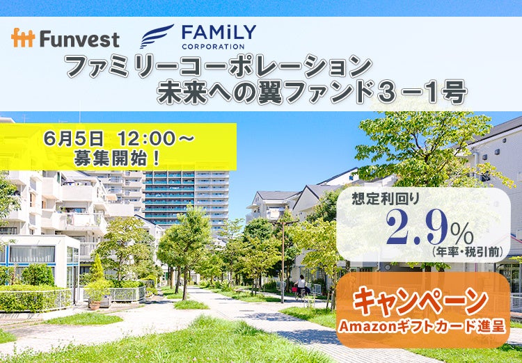 貸付型クラウドファンディング「Funvest」6/5より新ファンド「ファミリーコーポレーション 未来…