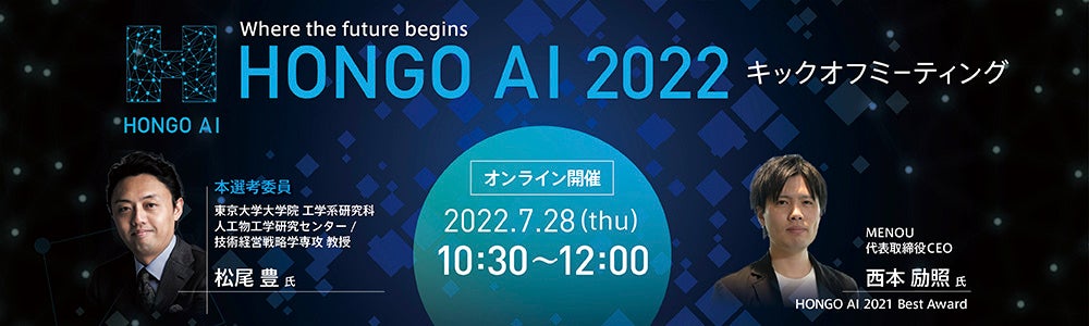 世界に挑むアーリーステージのAIスタートアップの登竜門「HONGO AI 2022」 7月28日(木…
