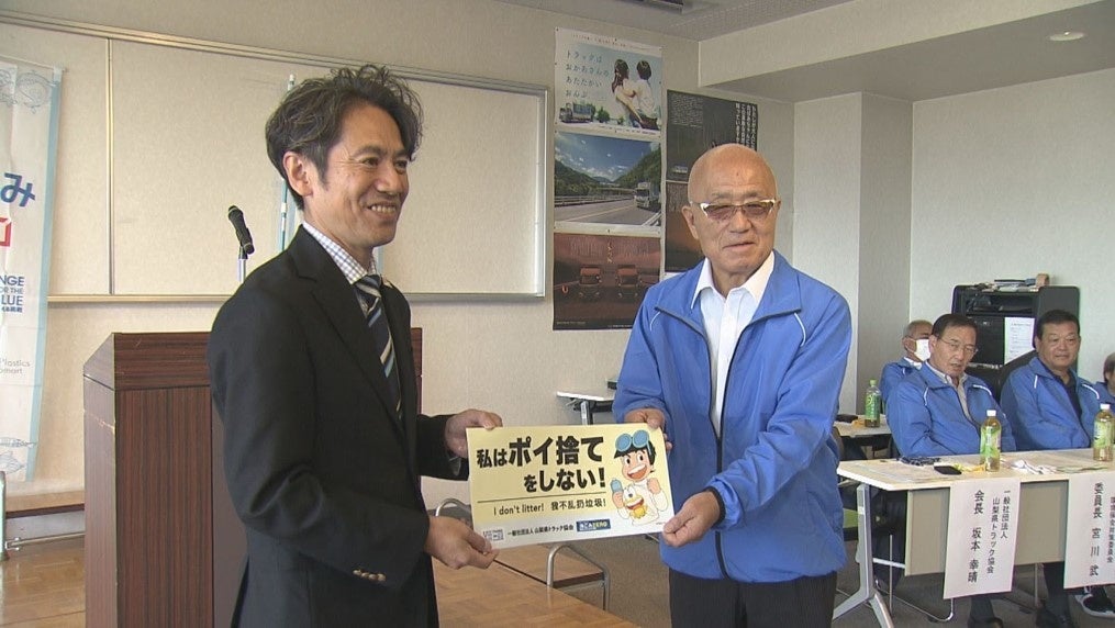 山梨のトラックドライバーがごみ削減をアピール!「私はポイ捨てをしないステッカー」贈呈式