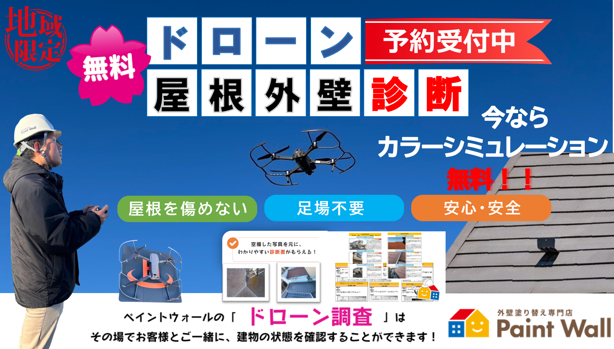 外壁塗装専門店 ペイントウォールドローン屋根・外壁診断のご予約でカラーシミュレーション無料 期間:4…