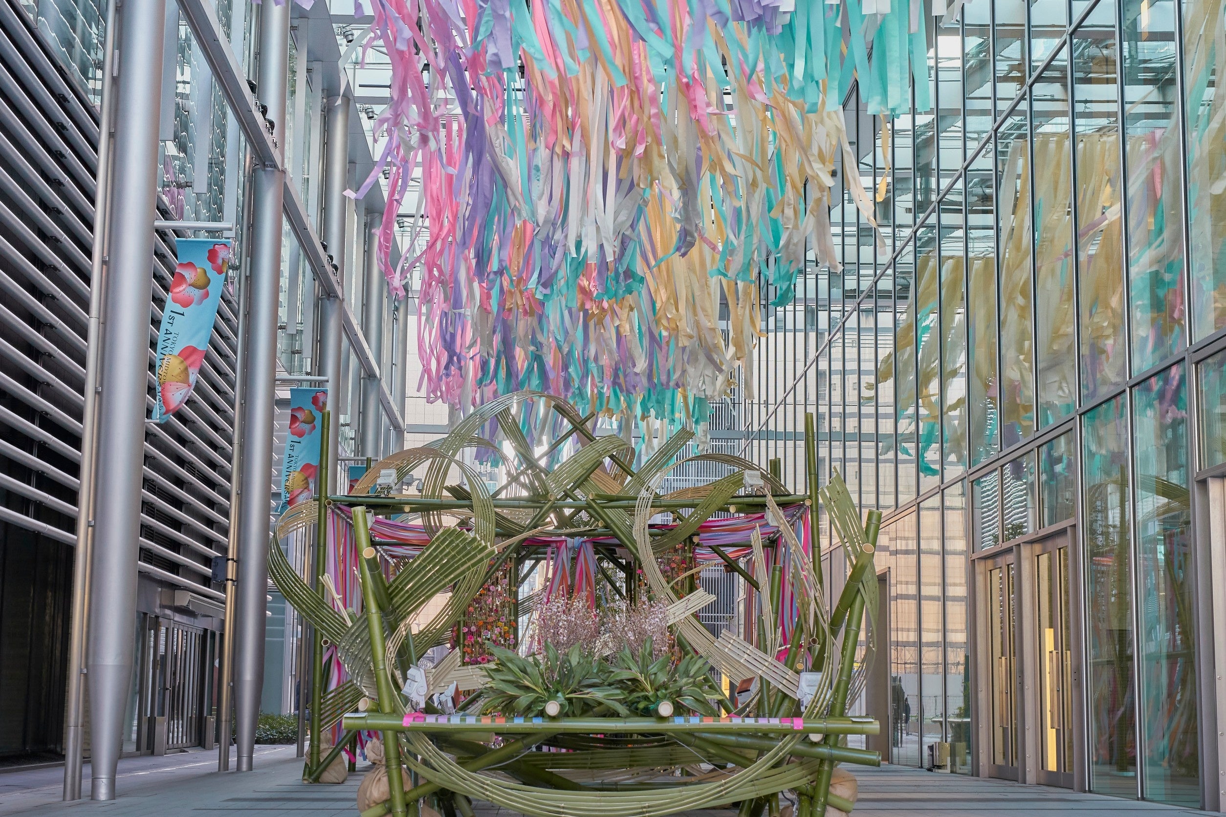 リボンを活用したディスプレイ事業第二弾。東京ミッドタウン八重洲1周年を彩るフラワーアートにリボンの資…