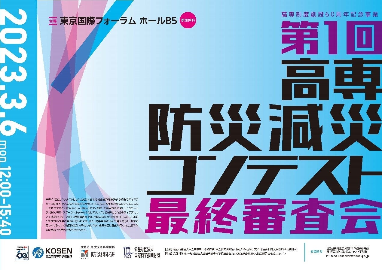 「第4回高専防災減災コンテスト 最終審査会」を1月24日(土)につくば国際会議場で開催!