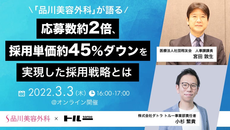 【3/3(木)16時~無料ウェビナー開催】「品川美容外科」が語る、応募数約2倍、採用単価約45%ダウ…