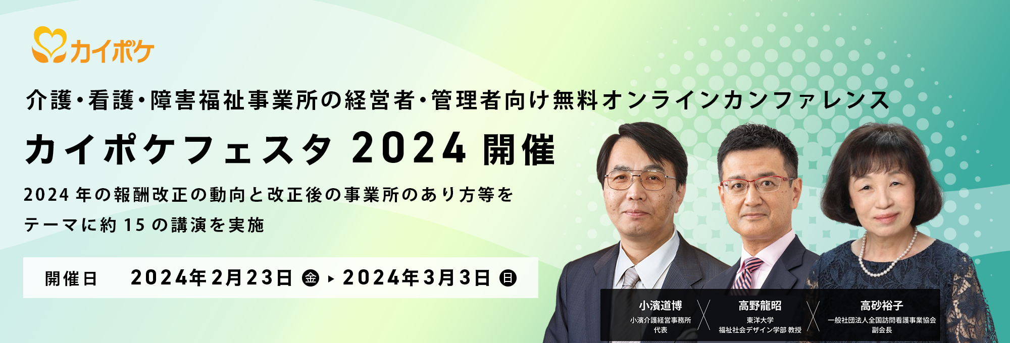 介護・看護・障害福祉事業所の経営者・管理者向け無料オンラインカンファレンス「カイポケフェスタ2024…