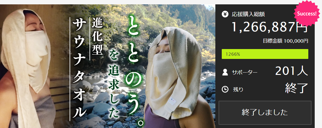【マクアケで目標額の1266%を達成】サウナで「ととのう」これ一枚♪ハット、マスクも兼ねた新発想のサ…
