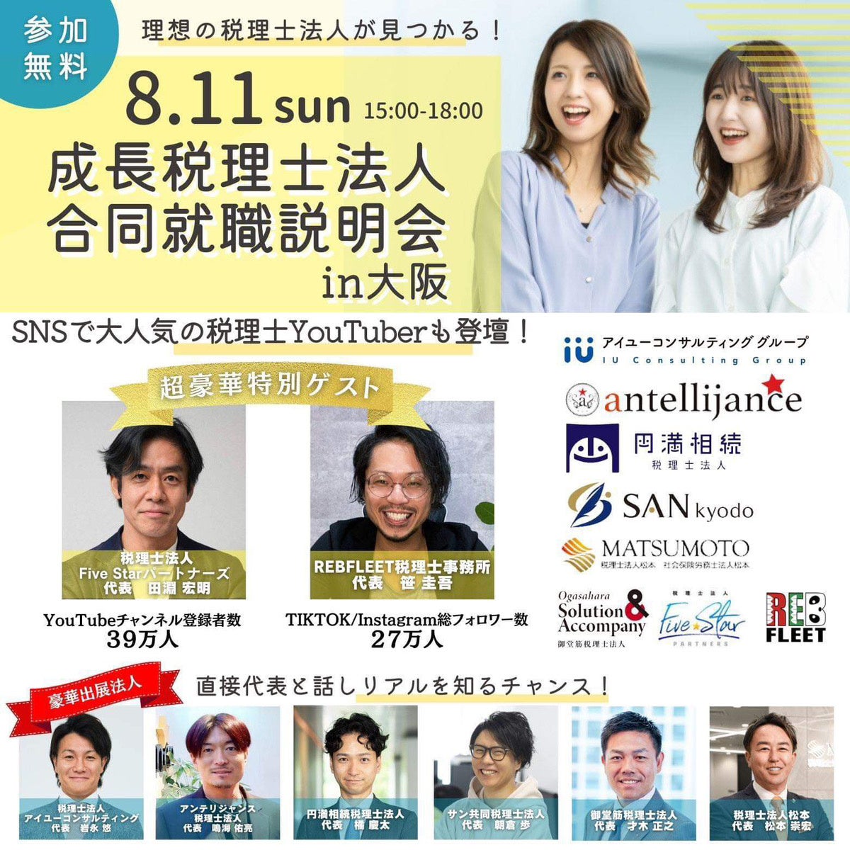【税理士受験生向け】「成長税理士法人 合同就職説明会 2024夏in大阪会場」出展のお知らせ(8/1…