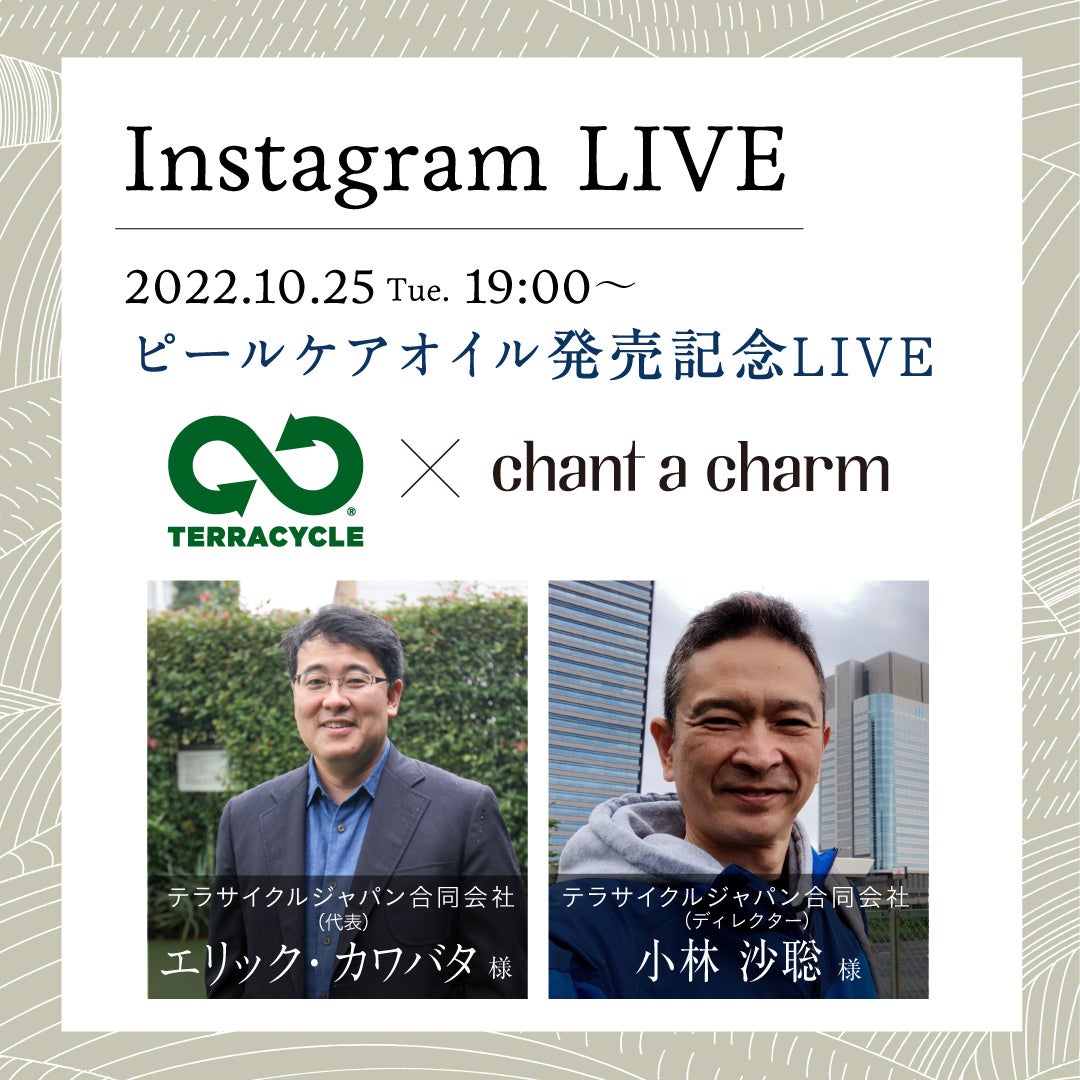 チャントアチャーム × テラサイクル「ピールケアオイル」発売記念スペシャルインスタグラムライブ。10…