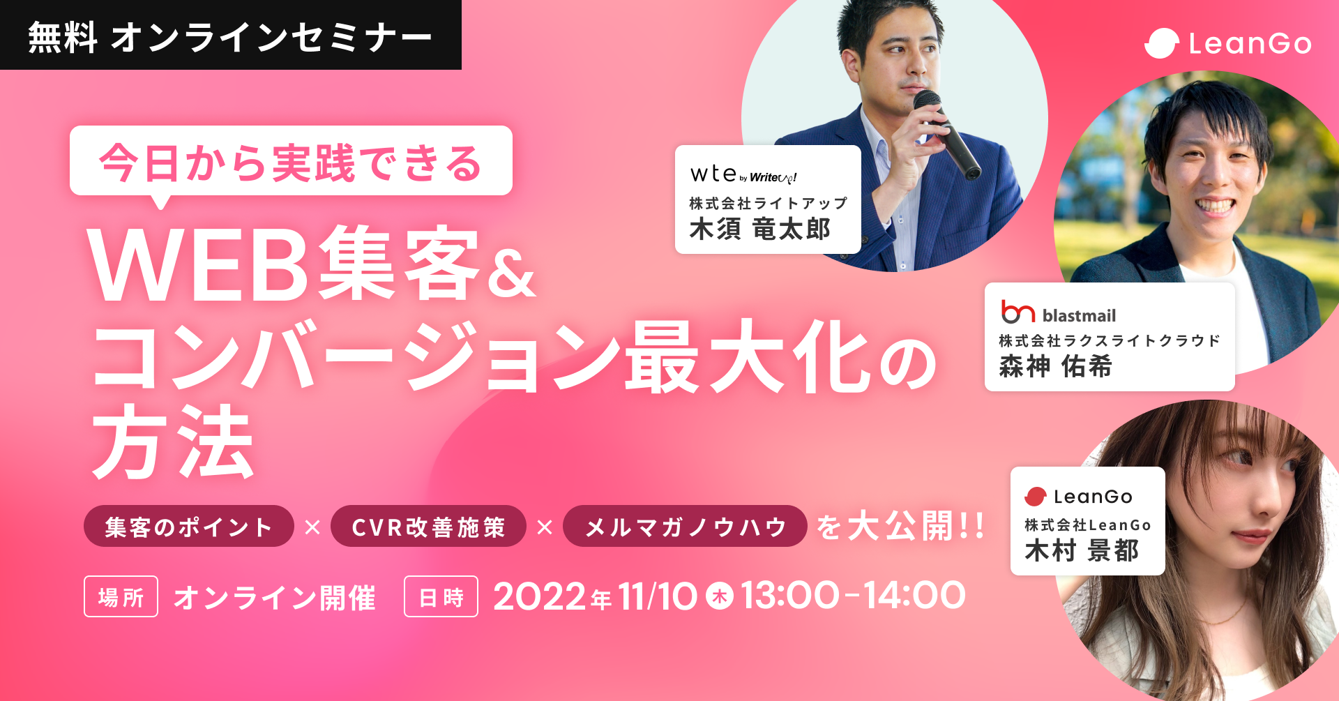 【Web担当者向けの無料ウェビナー】Web集客&CVR最大化を叶えるウェビナーをLeanGoがラクス…