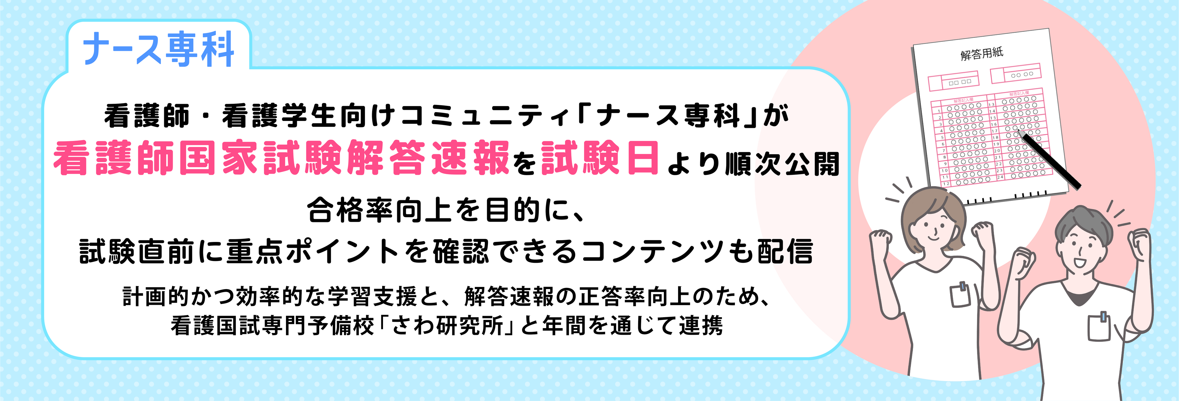 看護師・看護学生向けコミュニティ「ナース専科」が看護師国家試験解答速報を試験日より順次公開。合格率向…