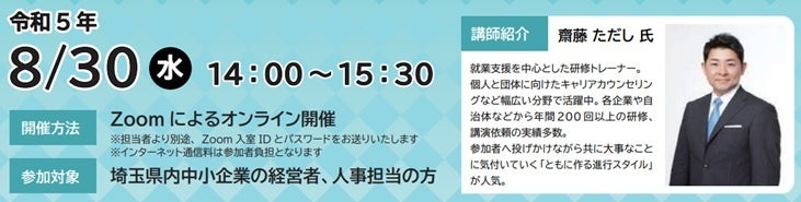 【採用に課題をお持ちの埼玉県内の中小企業の皆さまへ】埼玉県キャリアチェンジ促進事業主催のオンライン講…