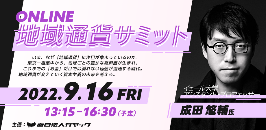 地域通貨は地方経済をどう変える? 成田悠輔氏らが語る9月16日(金)開催「第2回 地域通貨サミット」…
