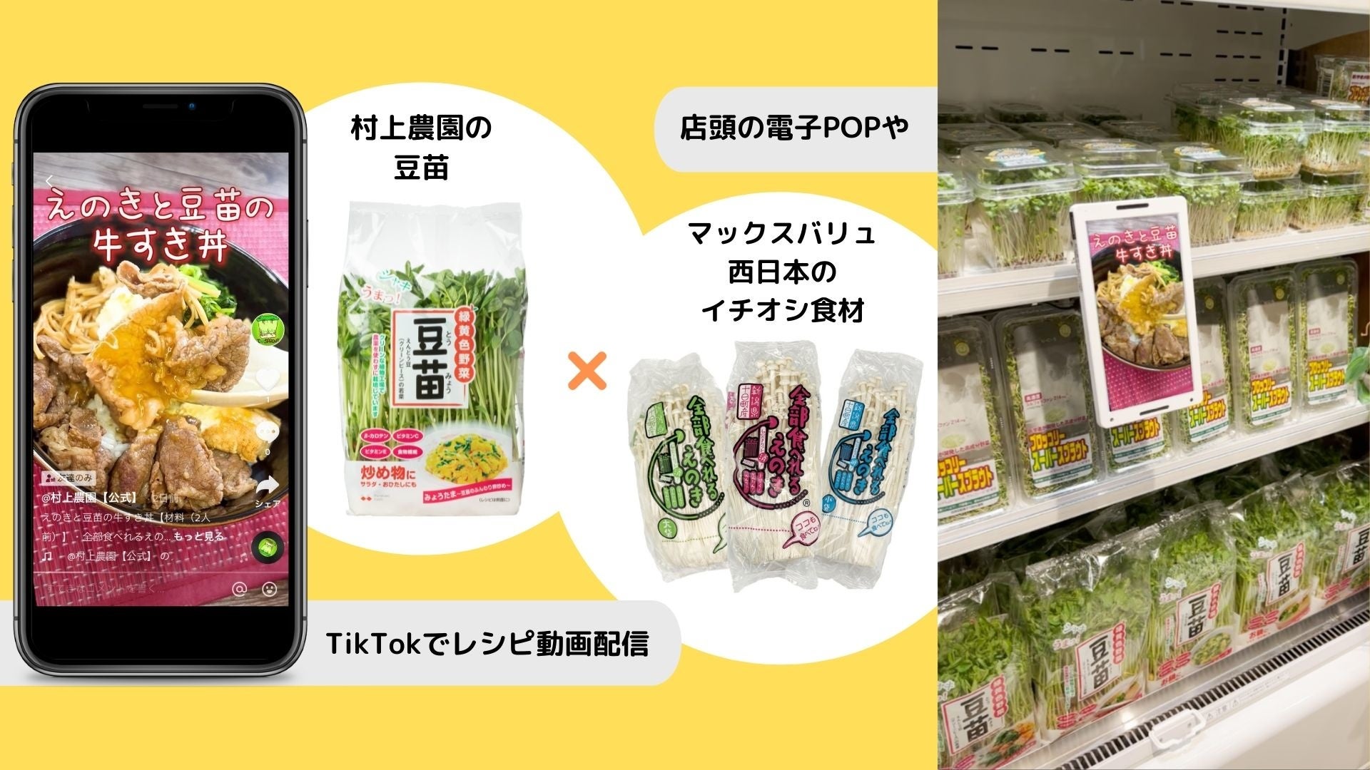 村上農園×マックスバリュ西日本 共同販促スタート TikTokや店頭で豆苗×イチオシ食材の簡単レシピ…