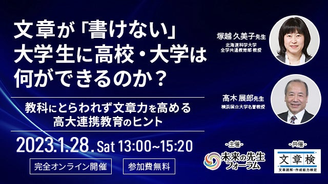 令和5年1月28日(土)13:00より未来の先生フォーラム「文章が『書けない』大学生に、高校・大学は…