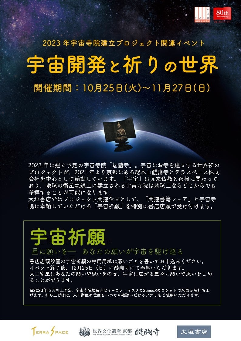 テラスペース×総本山醍醐寺×大垣書店 共同企画『宇宙開発と祈りの世界』フェアのお知らせ