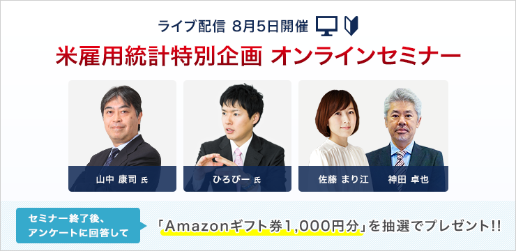 【外為どっとコム】『LIVE配信 オンラインセミナー 米雇用統計』市場への影響を識者が予想 ~8/5…