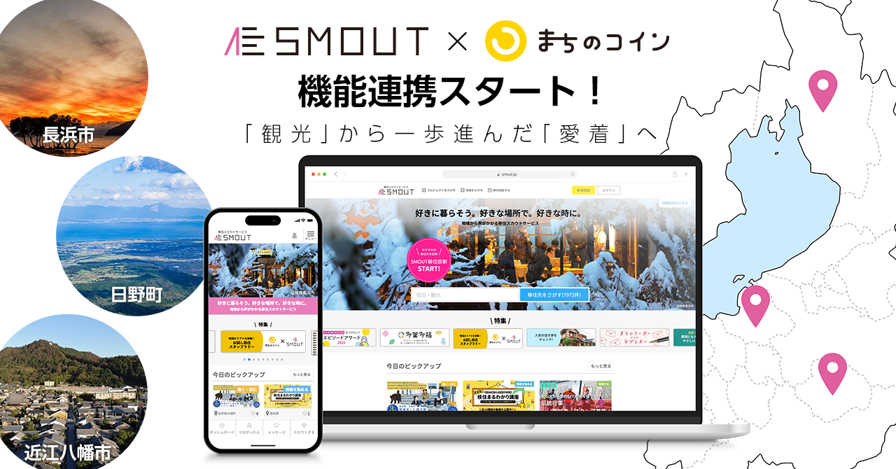 【初連携】移住・関係人口創出サービス「SMOUT」×コミュニティ通貨「まちのコイン」、滋賀県が全国に…