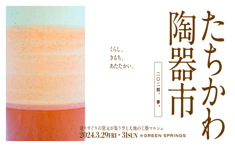 「選りすぐりの窯元が集う空と大地の工藝マルシェたちかわ陶器市」GREEN SPRINGSにて3/29…
