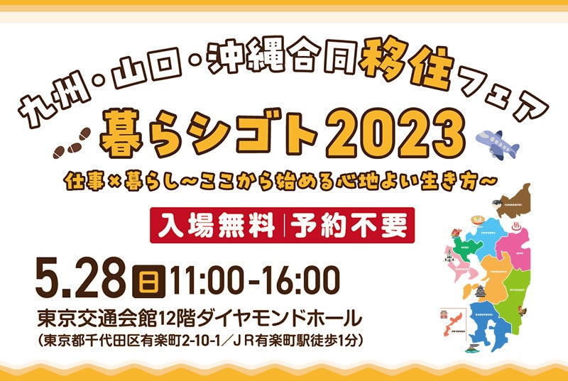 合同移住相談会「九州・山口・沖縄 暮らシゴト2023」を、5月28日 有楽町の交通会館にて開催します…