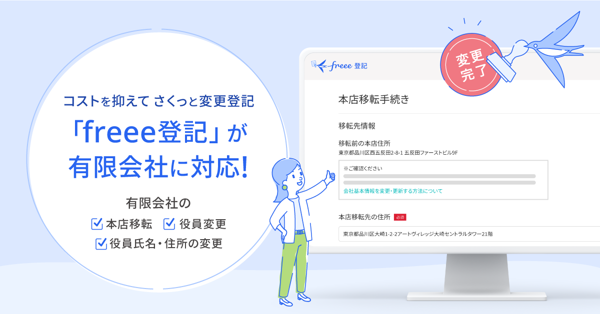 freee登記、新たに有限会社の変更登記に対応