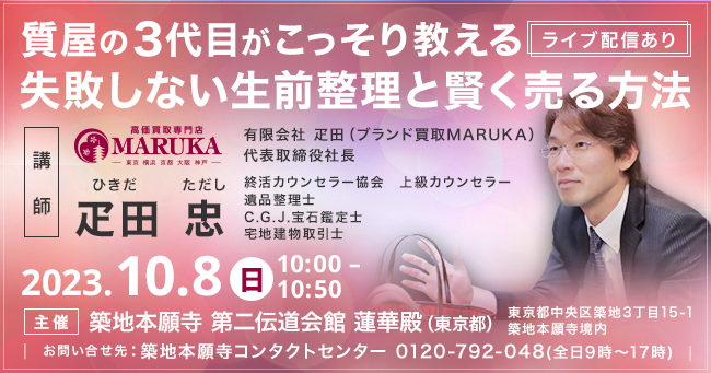 築地本願寺お馴染み!終活セミナー「質屋の3代目がこっそり教える、失敗しない生前整理と賢く売る方法!!…