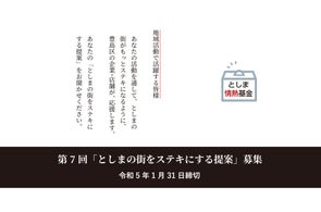 豊島区の民間企業・商店が支援する、としま情熱基金 第7回「としまの街をステキにする提案」募集開始!